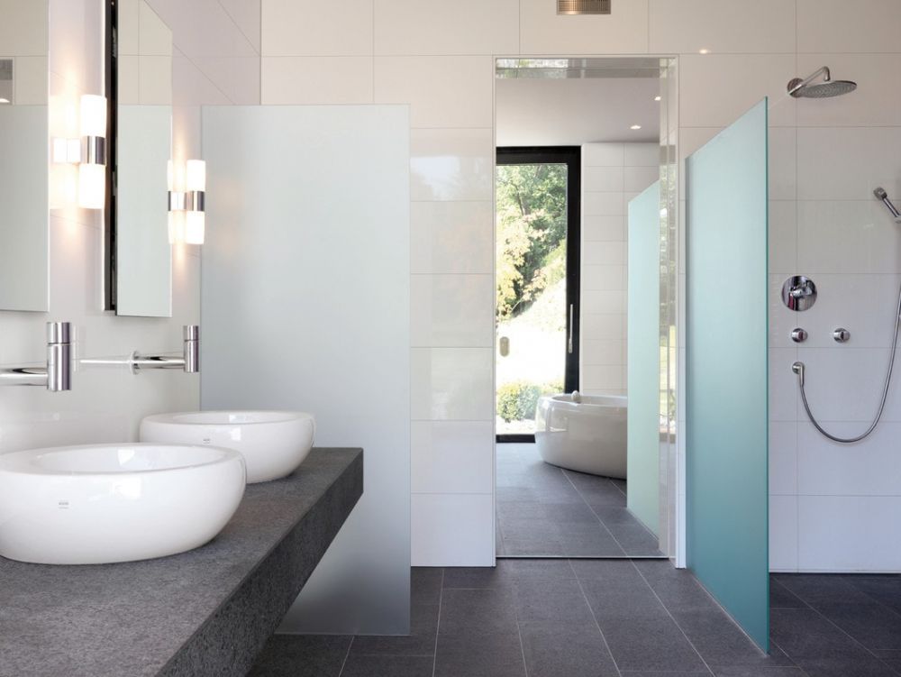 Brighten your bathroom with layered lighting — including vanity lights, ambient lighting, and modern energy-efficient fixtures.
